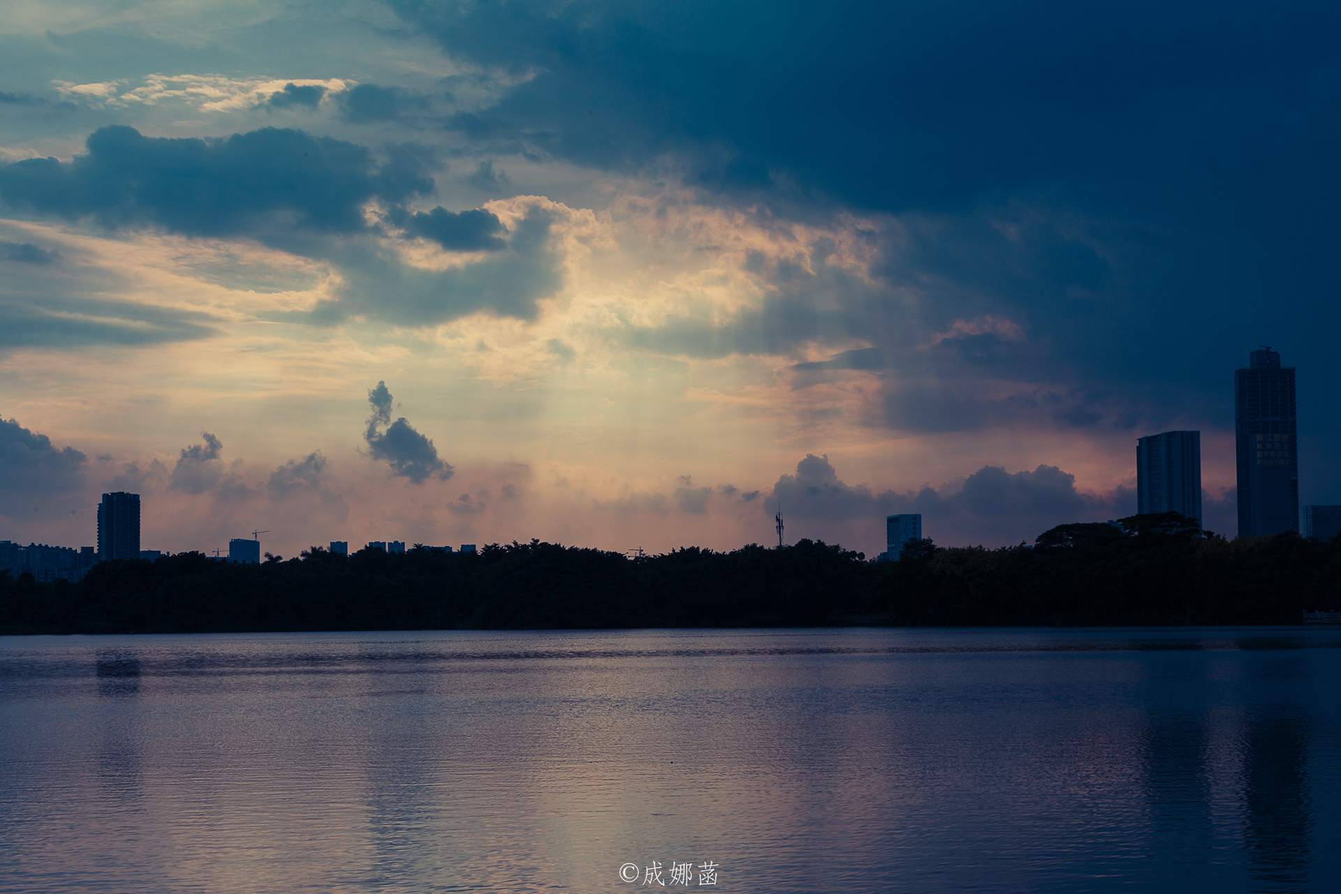 A bright moon within, the sky stays serene.